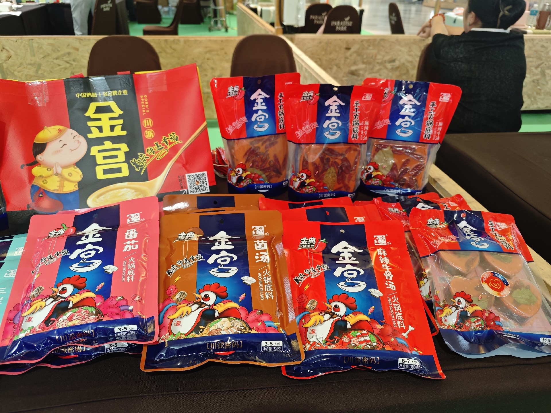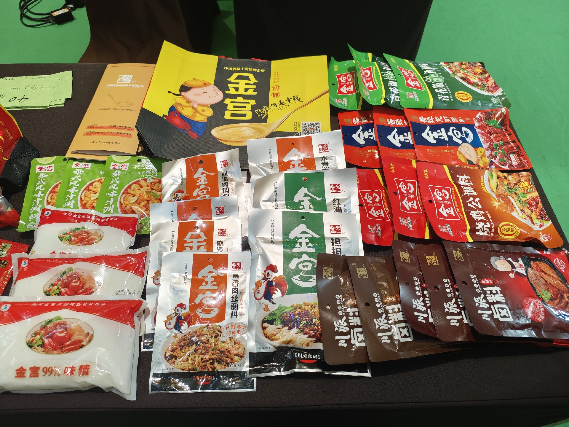 泰国水产资源丰富,旅游经济发达,消费者偏好重口味、酸辣鲜香的饮食风格,与四川菜系在风味上高度契合。金宫川派味业紧扣当地市场特性,精心甄选适合泰国市场的核心产品阵容参展,包括金宫鸡精、味精、火锅底料、小龙虾调料及川菜经典调料(金宫鱼香肉丝调料、回锅肉调料、麻婆豆腐调料、红油水饺调料)等,在现场获得大量采购商与消费者的关注与青睐。其中,新品系列尤为亮眼:金宫香辣蘸料、烧鸡公调料、青花椒嫩鱼调料、香辣鱼调料等风味独特、味美价优、泰国餐饮企业与零售采购商重点关注,表达出强烈合作意向。