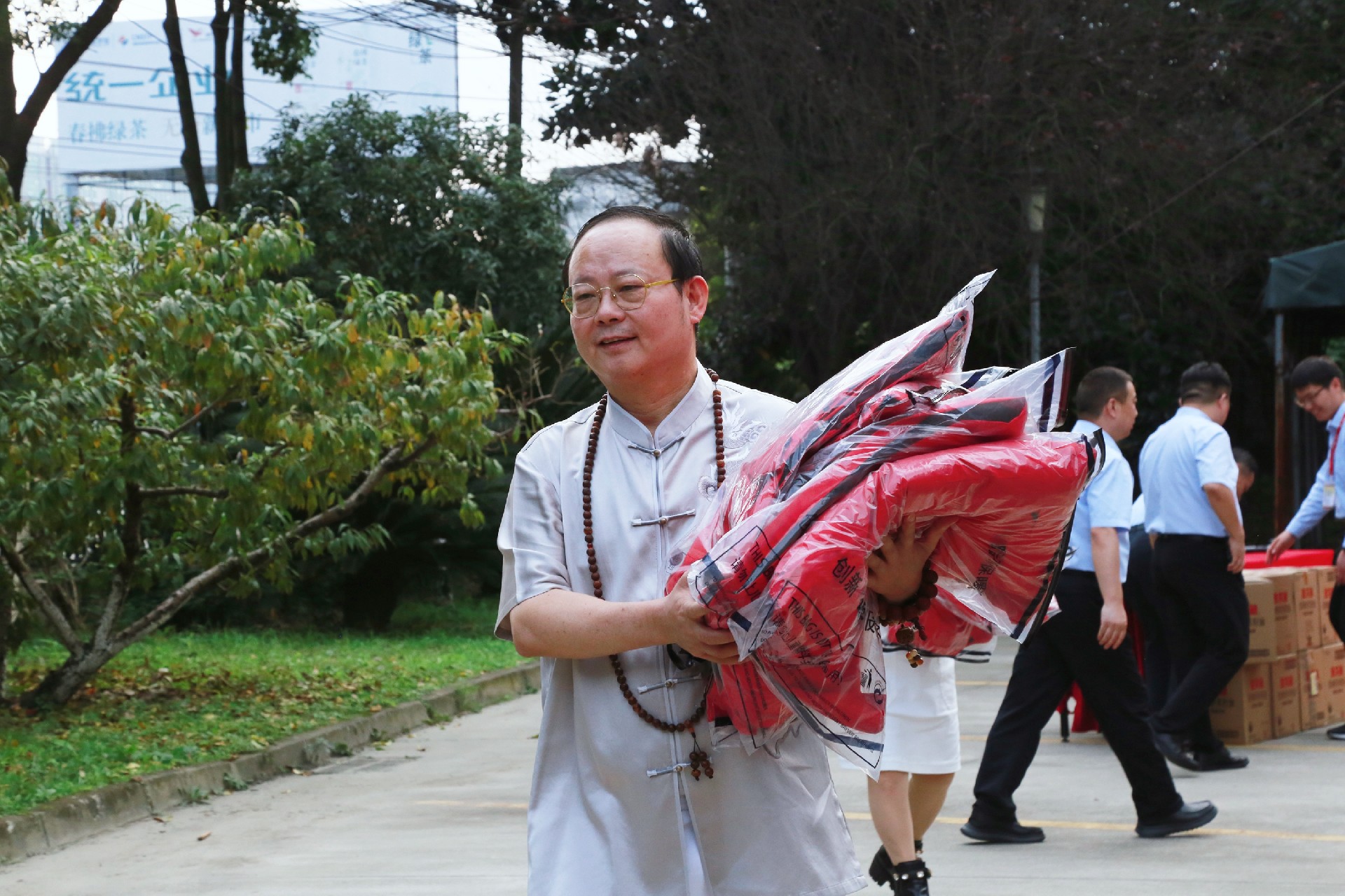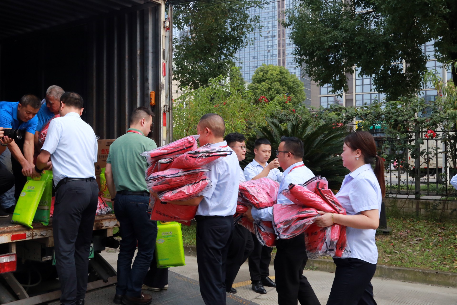 现场,在主持人引导下,双方进行了物资交接仪式。龚永泽董事长将象征爱心的捐赠物资移交到四川广播电视台驻村工作队队长李强手中,并与到场嘉宾共同合影留念。全体人员参与装车,圆满完成捐赠环节。